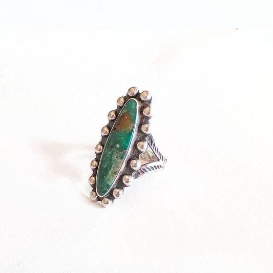 Vintage Navajo King's Manassa Turquoise Ball Bead Arrow Stamped Sterling Silver Ring - Size 6.5