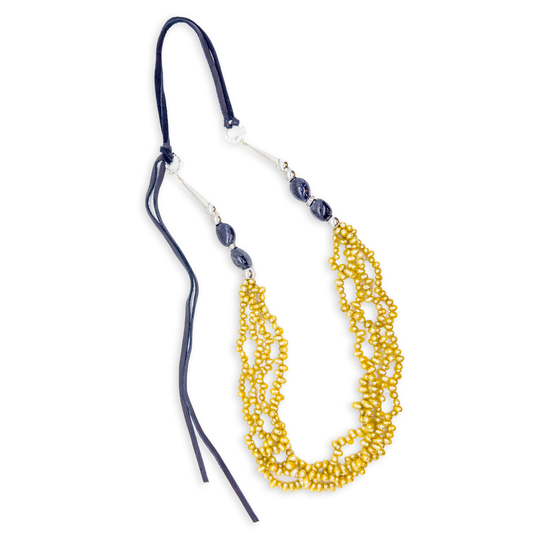 Sicangu Lakota Oyate Multi-Strand Pearl, Onyx and Leather Sterling Silver Necklace