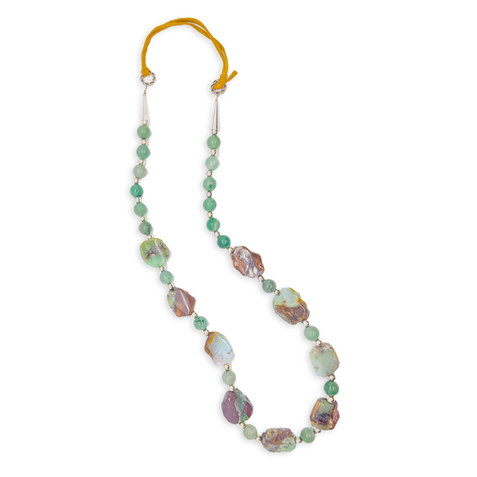 Sicangu Lakota Oyate Natural Blackjack Turquoise Nugget and Penn Shell Heishi Bead Sterling Silver Necklace
