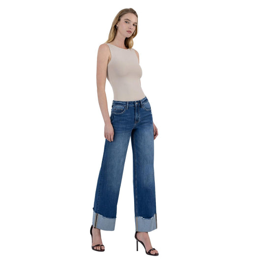 Blue Stream High Rise Cuffed Baggy Wide Leg Jeans
