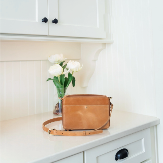 sold out. bummer!Camel Full Grain Leather Nomad Crossbody Bag