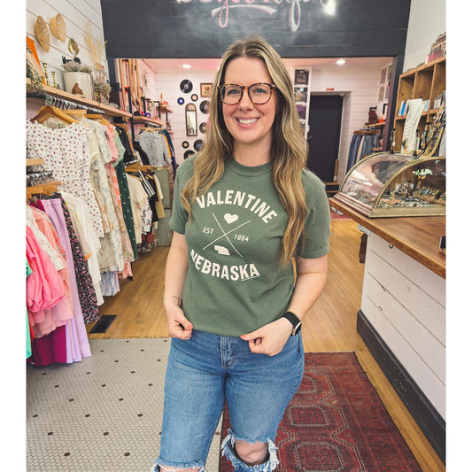 Moss Green “Valentine Nebraska Est: 1884” Garment-Dyed Heavyweight Graphic Tee