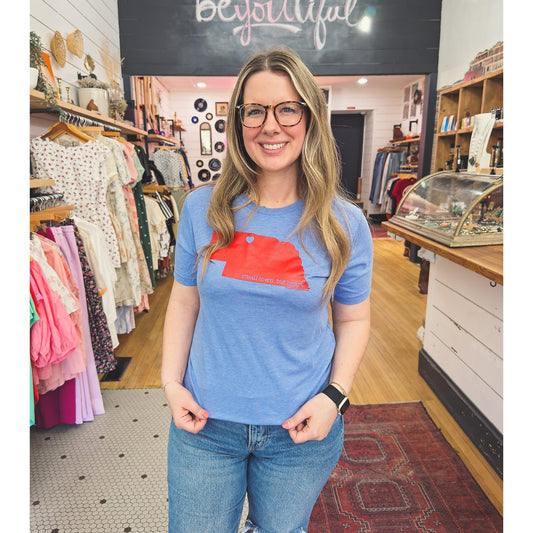 Blue Triblend “Small Town. Big Heart.” Valentine, Nebraska State Graphic Tee