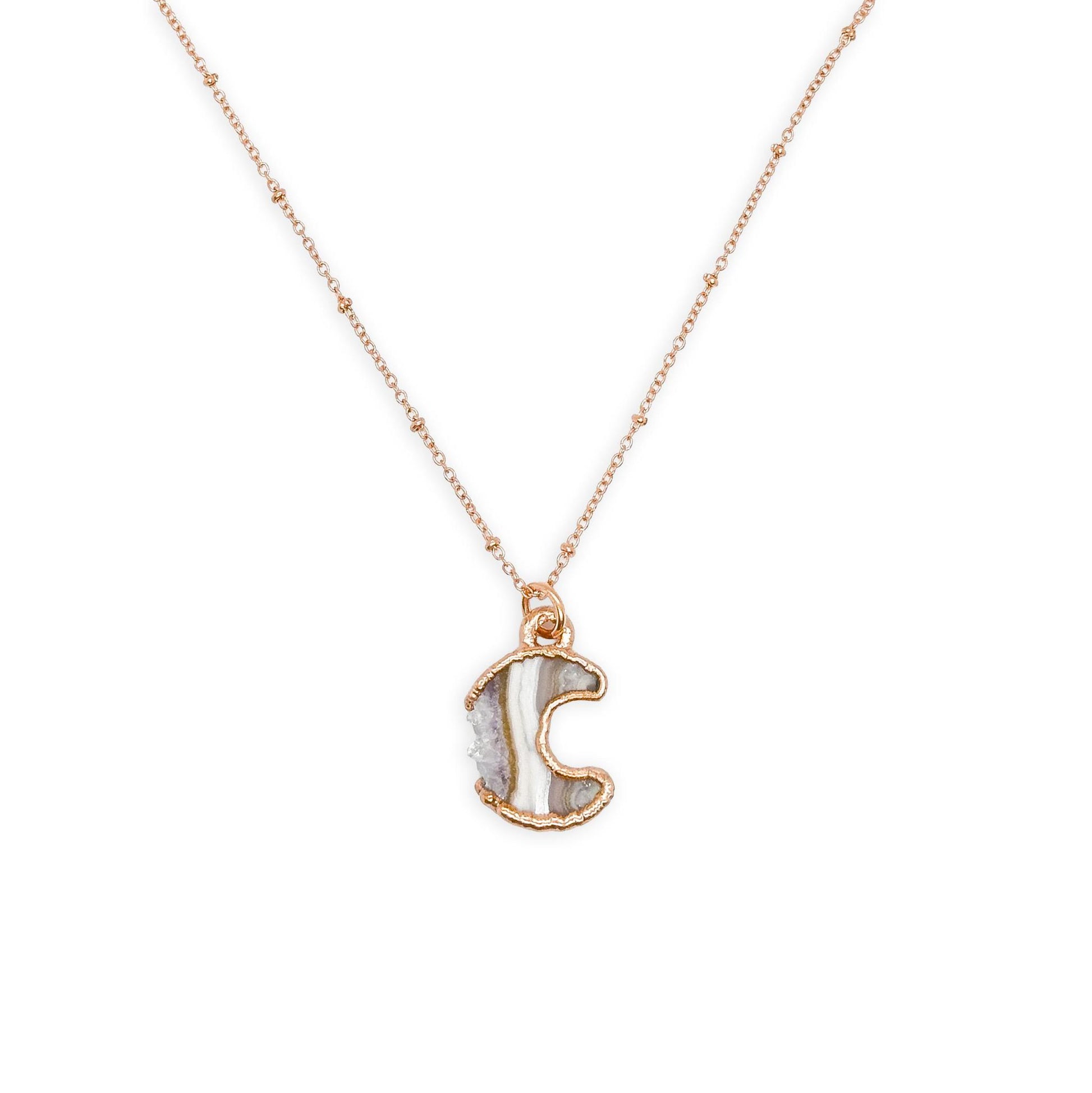 Electroformed Crescent Moon Amethyst Pendant Necklace on 18″ Copper Chain