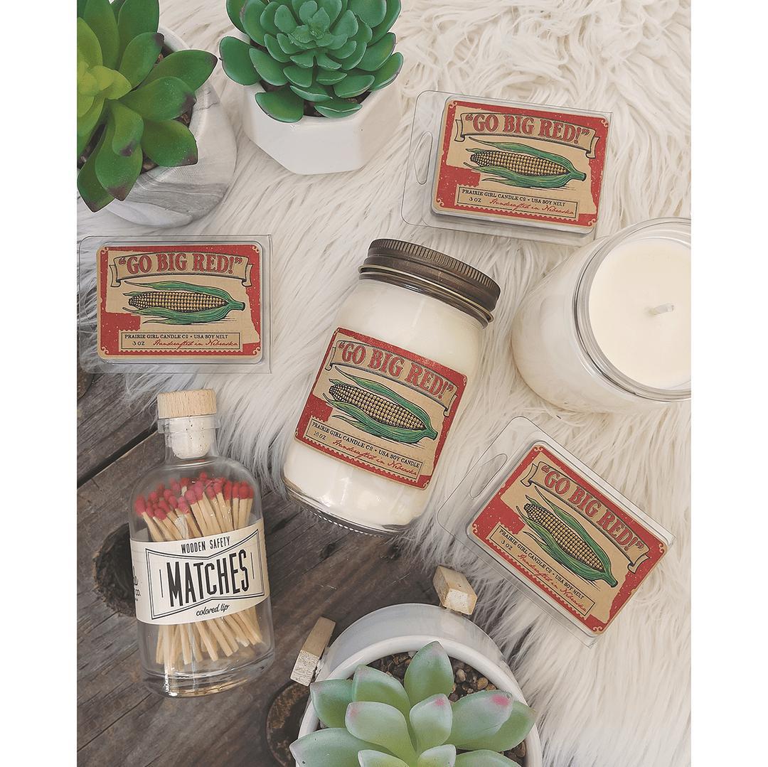 Each 16oz Mason Jar Candle is hand poured in Nebraska with 100% Natural American Soy Wax and offers 80-100+ hours burn time. Prairie Girl Candle uses American grown soy wax to support the American farmer. Soy is eco-friendly, burns cleaner, and is made from a renewable resource. Each candle and melt is dye-free, phthalate-free, made and hand-poured with care on a little farm on the prairie of western Nebraska.