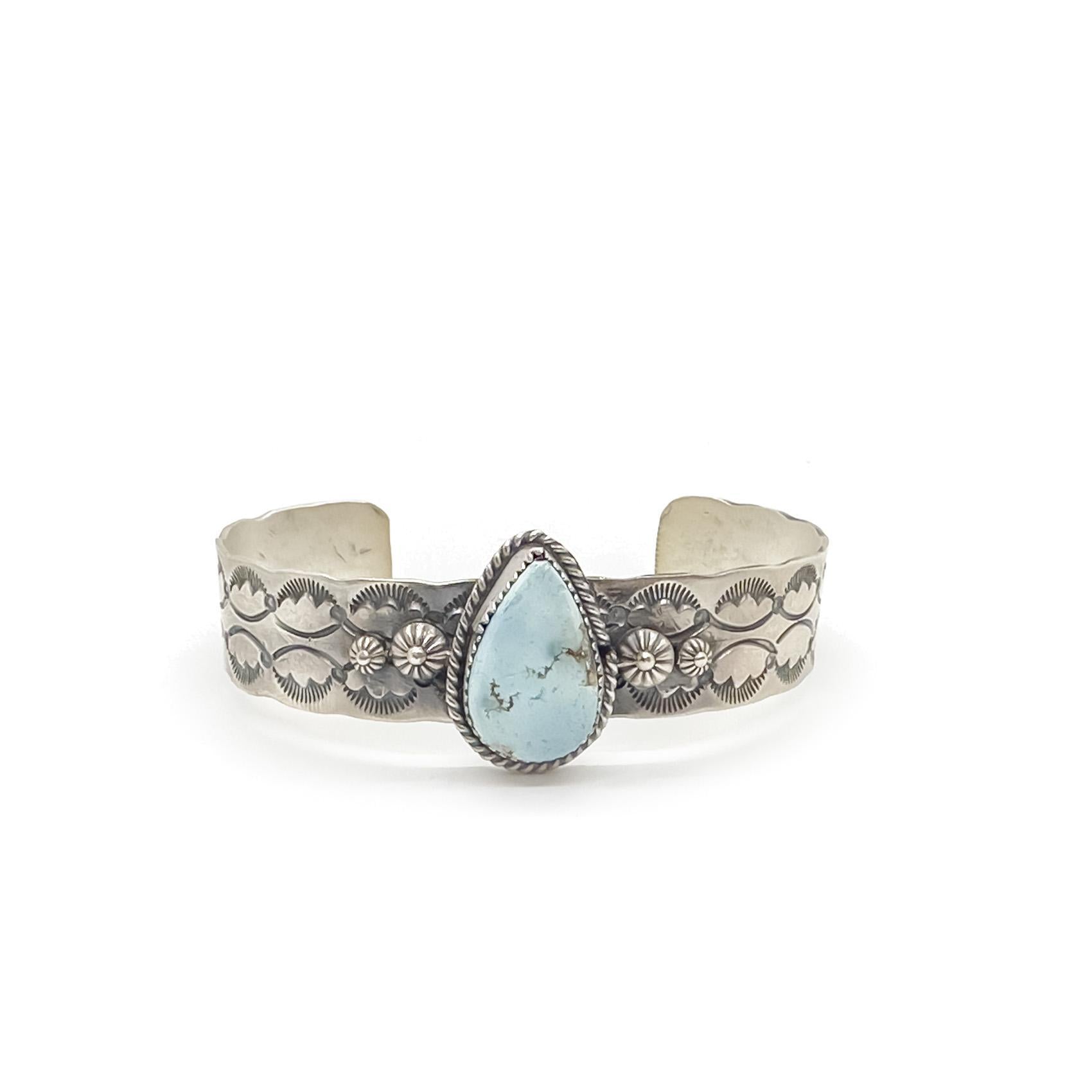 Navajo Golden Hills Tear Drop Sterling Silver Cuff Bracelet by Jeff Largo
