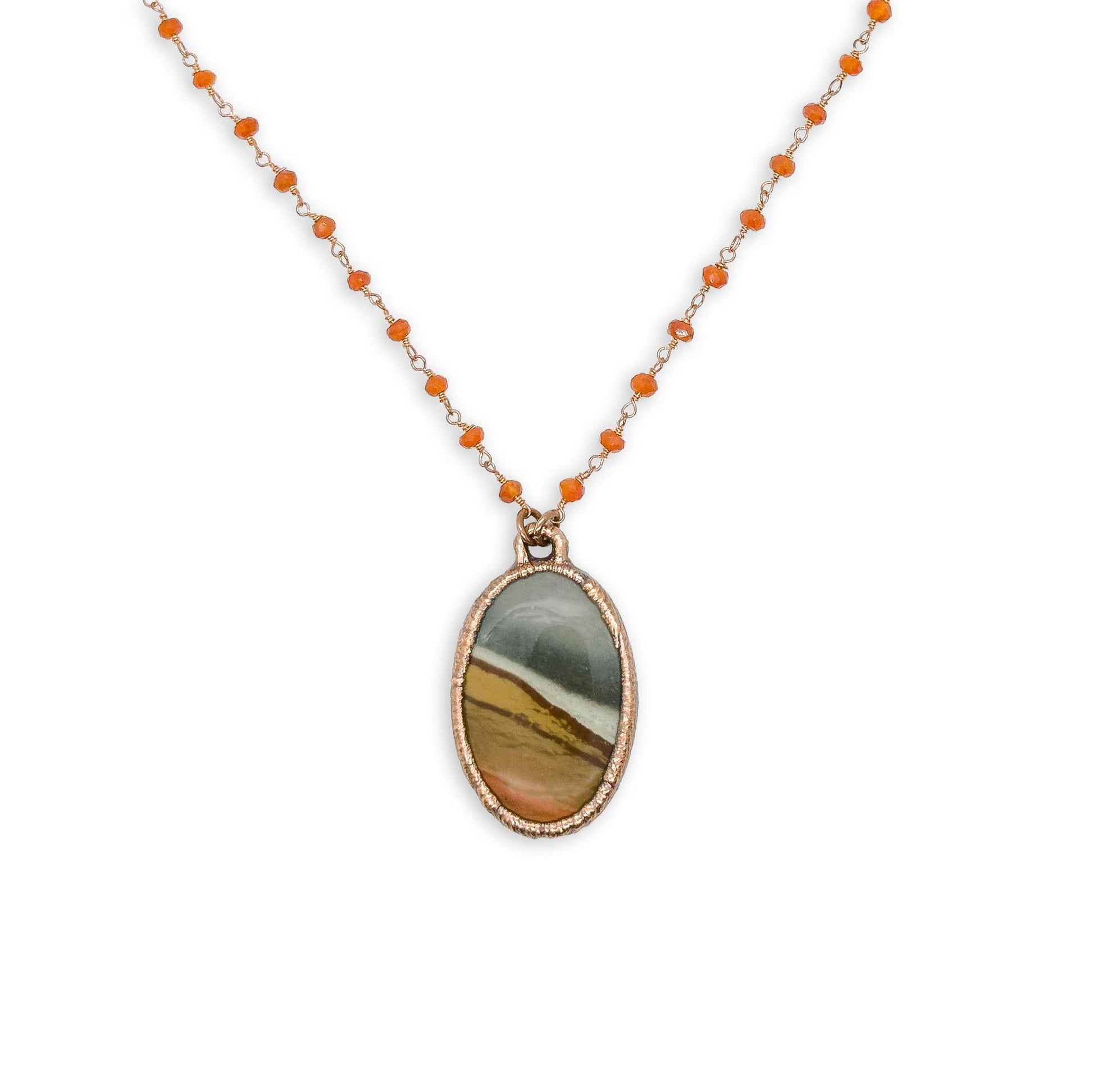 Oval Sandhills Picture Jasper Pendant Necklace on 18″ Citrine Beaded Copper Chain