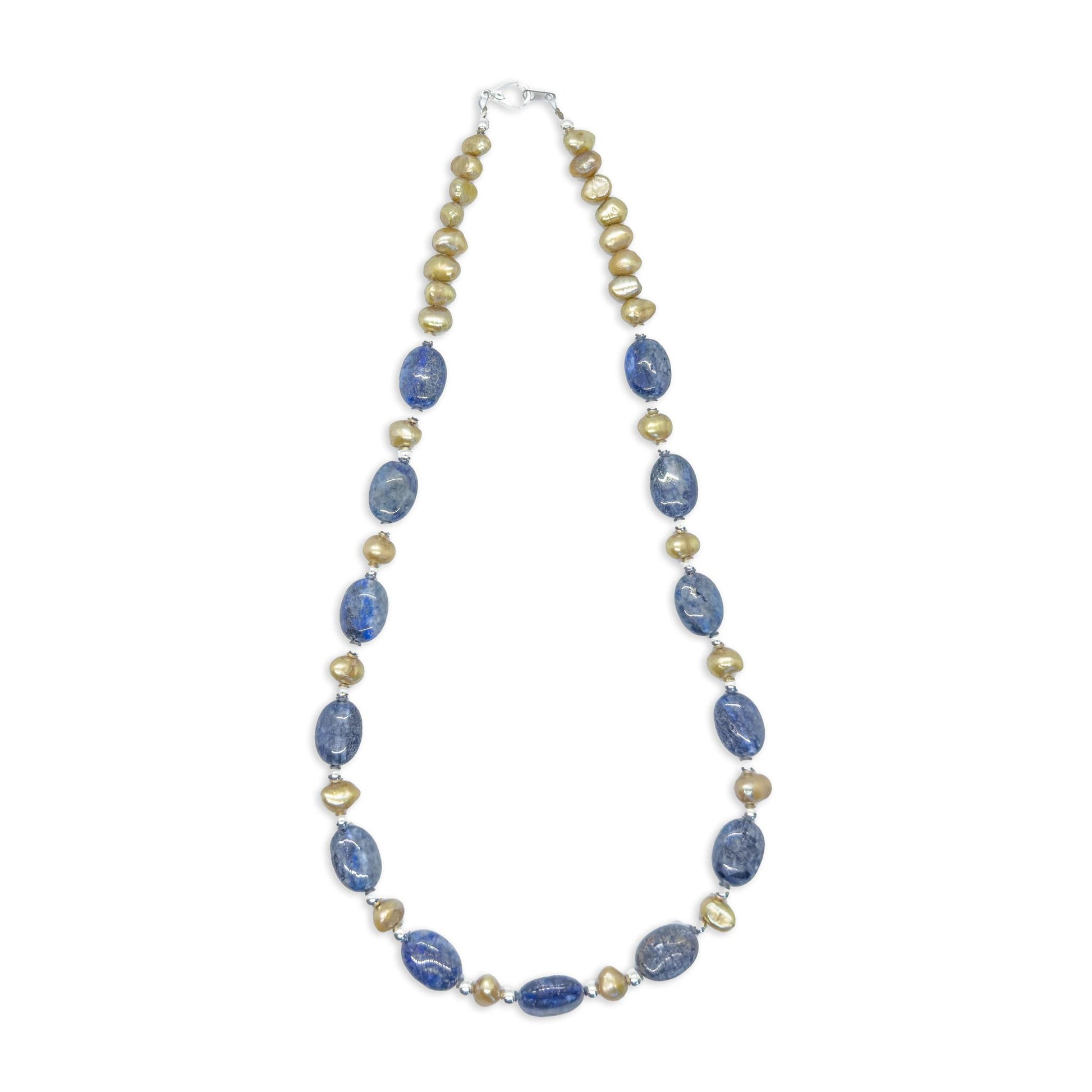 Sicangu Lakota Oyate Lapis with Pearl & Sterling Silver Accent Necklace